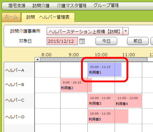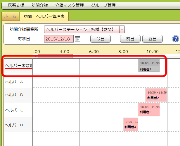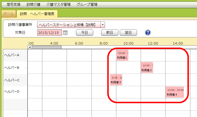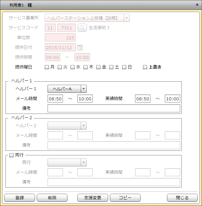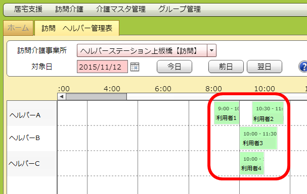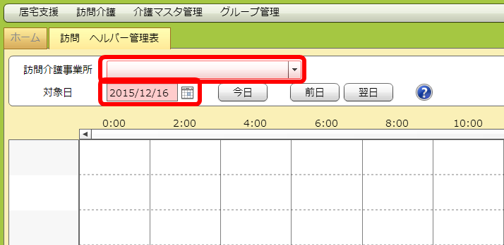 「対象日」に入れた年月日のヘルパー管理票が出てきます。