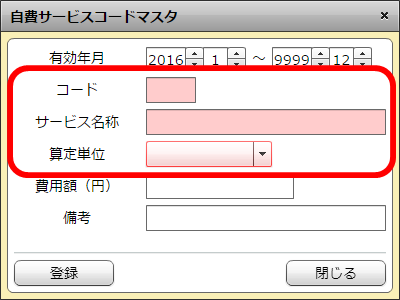 詳細を見たいサービスコードをダブルクリックすれば、登録されている情報の詳細が出てきます。