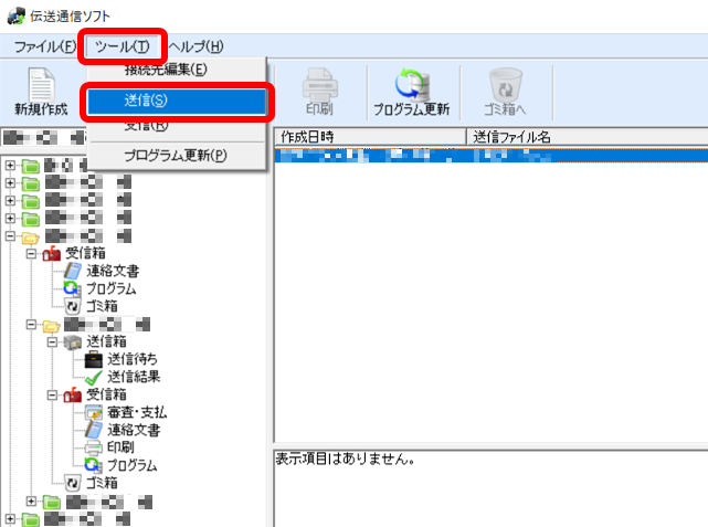 送信したいCSVを選択し終わったら、「ツール」-「送信」を選択してください。
