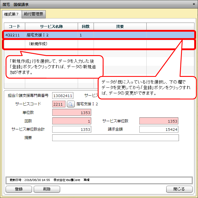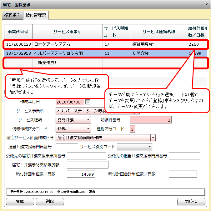 詳細を見たい利用者の列をダブルクリックすると、下のような画面が出てきます。詳細画面でデータの追加、変更、削除ができます。