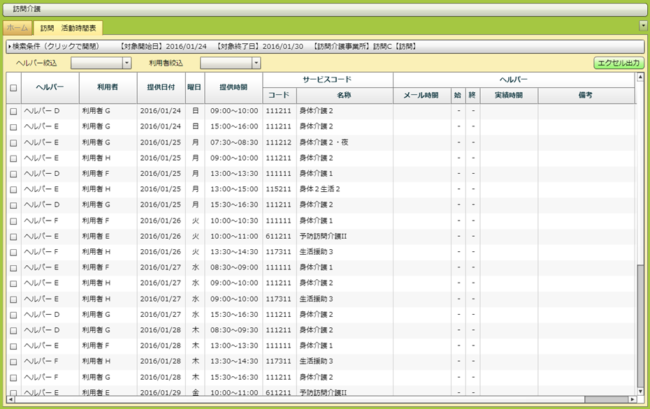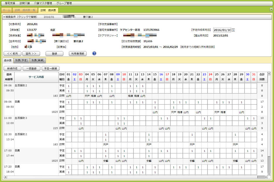 訪問 提供票でのヘルパー名表示