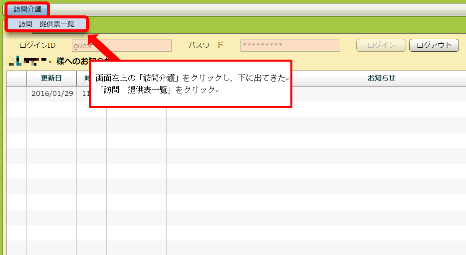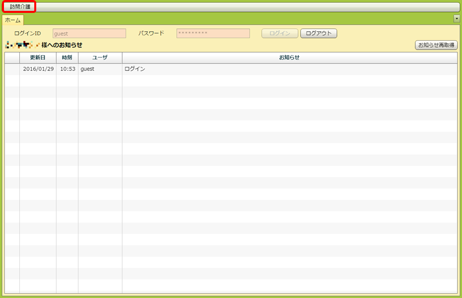 訪問のメニューが表示されました。