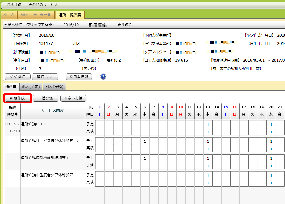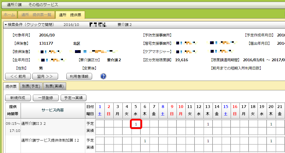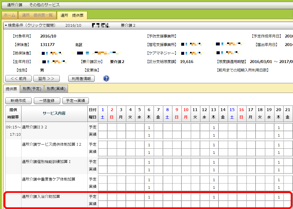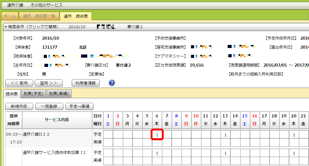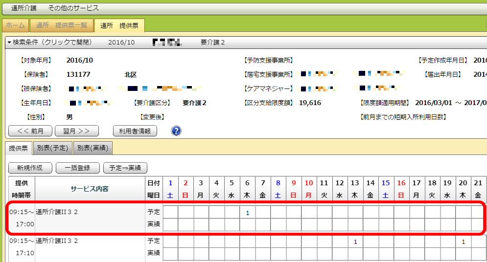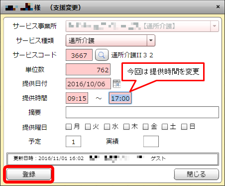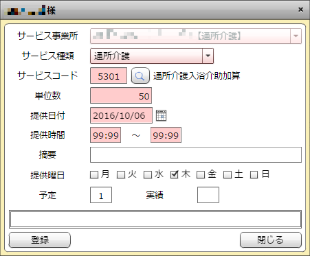 時間、サービス内容を変更したい予定、または実績をダブルクリックしてください。 下のような画面が出ます。