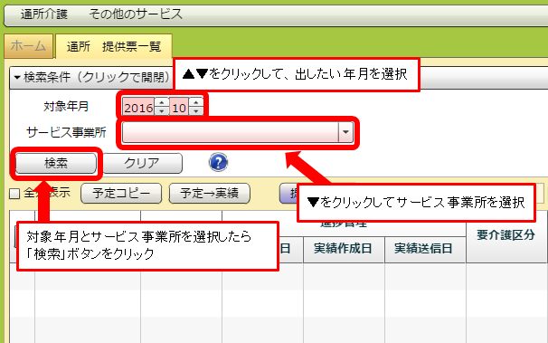 日付入力欄の右隣りにあるプルダウンをクリックし、「予定作成日」「実績作成日」「実績送信日」の中から登録したいものをえらんでください。