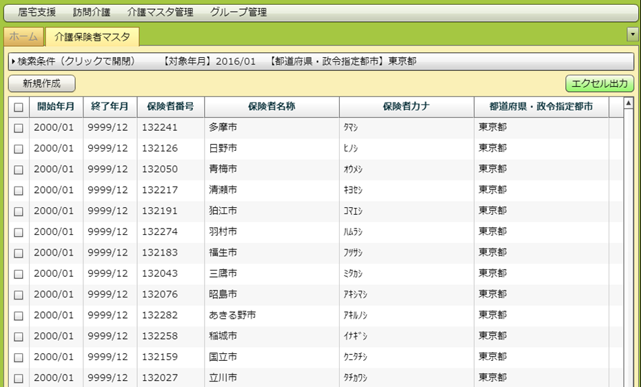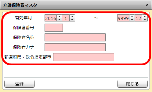 介護保険者マスタの場合は入力欄全てが入力必須になっています。